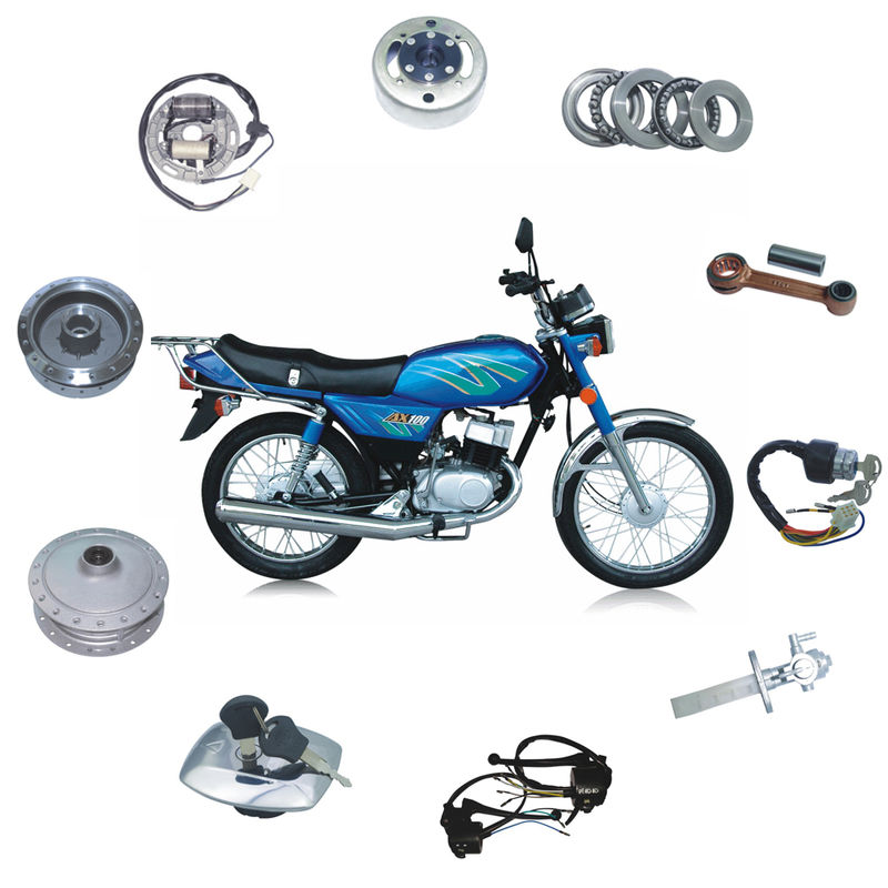 Części przekładni | tylny amortyzator, głowica kierownicy, pedał zmiany biegów, koło kierownicy, pręt hamulcowy, pedal hamulcowy, tłumik spalin, gumowy podnóżek, nosicielem, podnośnikiem bocznym, przednim wstrząsem, podnośnikiem środkowym, siedzeniem, zbiornik paliwa, uchwyt, przednia osłona błota, przednia pręta pedału, odpalnik, tylne ramię widelca, głowica uchwytu światło, zestaw dźwigni, cewka zapłonowa itp. | ||||||