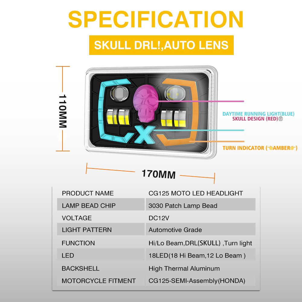 YAYE CG125 Półzmontowana Czerwona Czaszka DRL Soczewka Projekcyjna Motocyklowy Reflektor LED 18